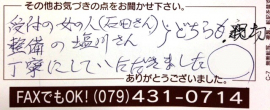 加古川市の F様 ありがとうございました