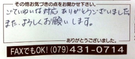 高砂市の F様 ありがとうございました